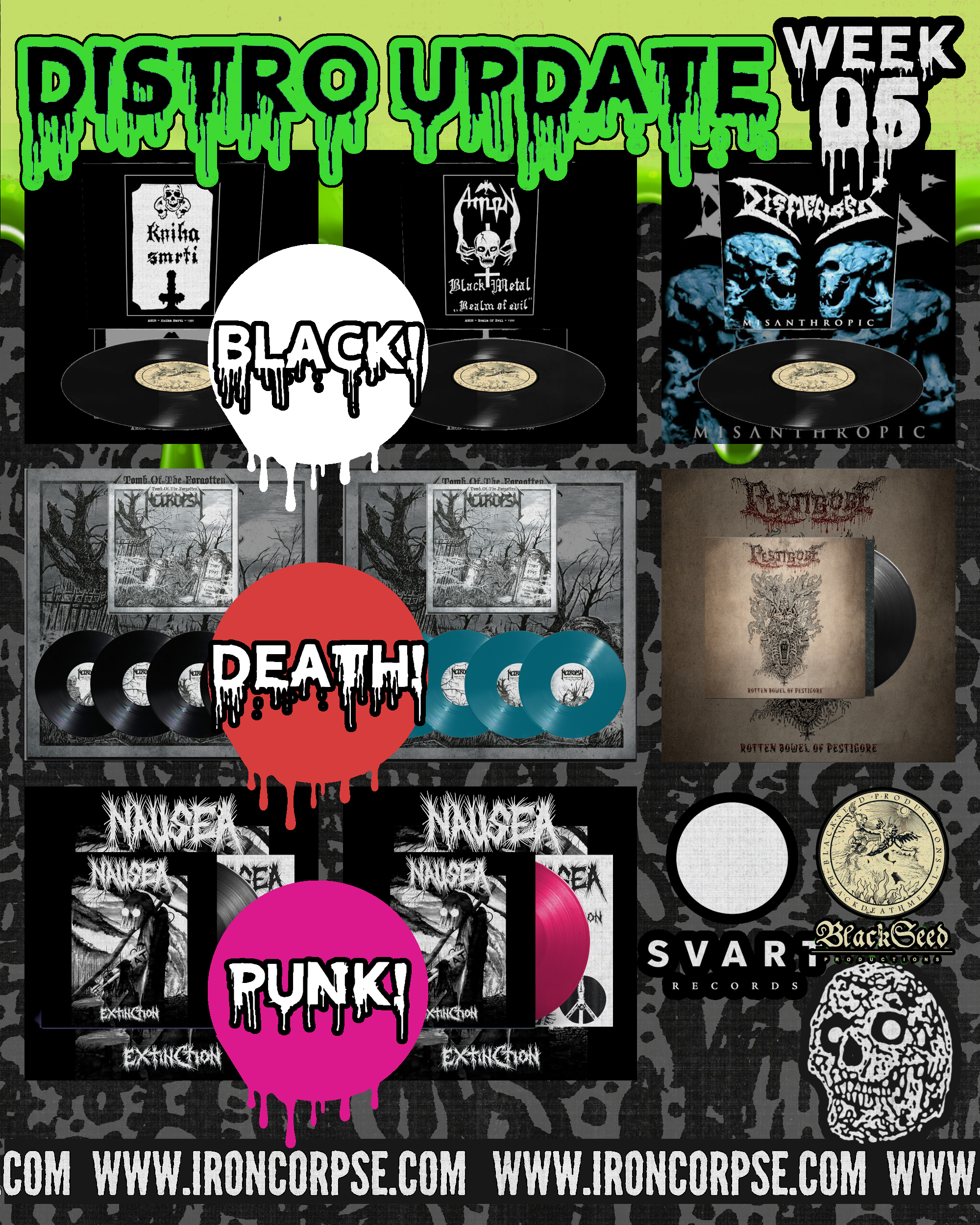 BLACK, DEATH, PUNK. The second update for the week includes titles from BLACKSEED PRODUCTIONS and SVART RECORDS, including the massive 4 LP box from early 1990’s finnish death metal legend NECROPSY.