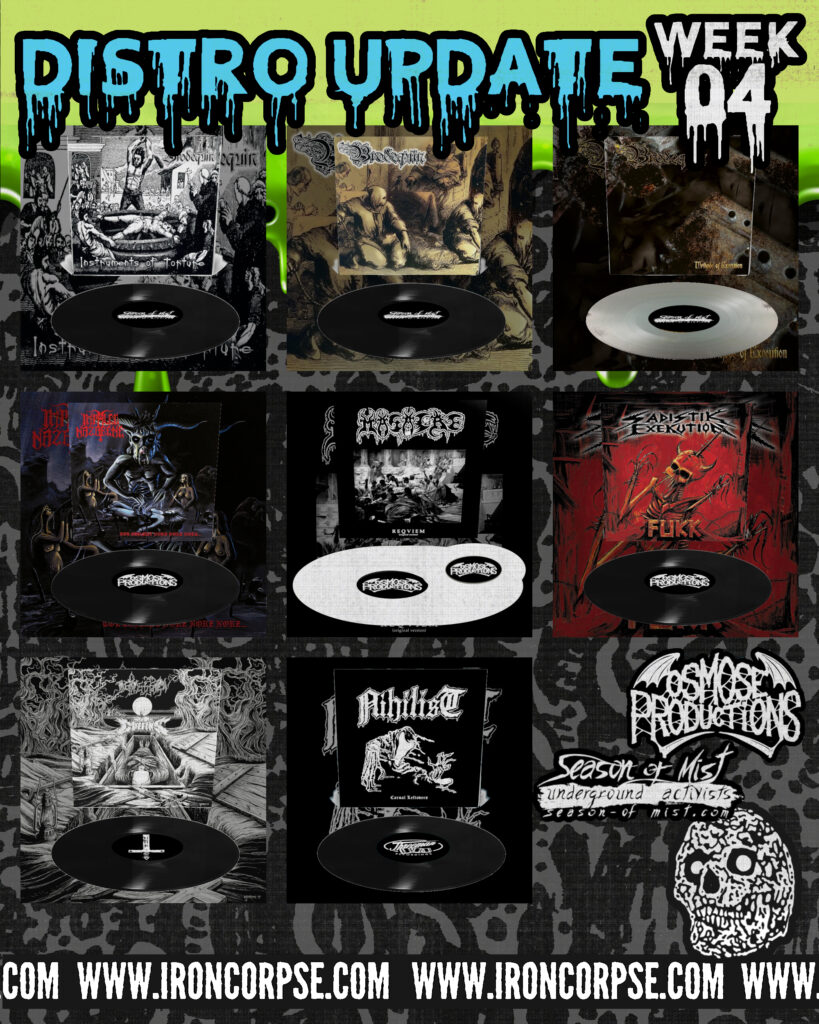 Feast your senses on the represses of BRODEQUIN’s early trilogy on SEASON ON MIST, restocks from OSMOSE PRODUCTIONS and a couple of cult classics.