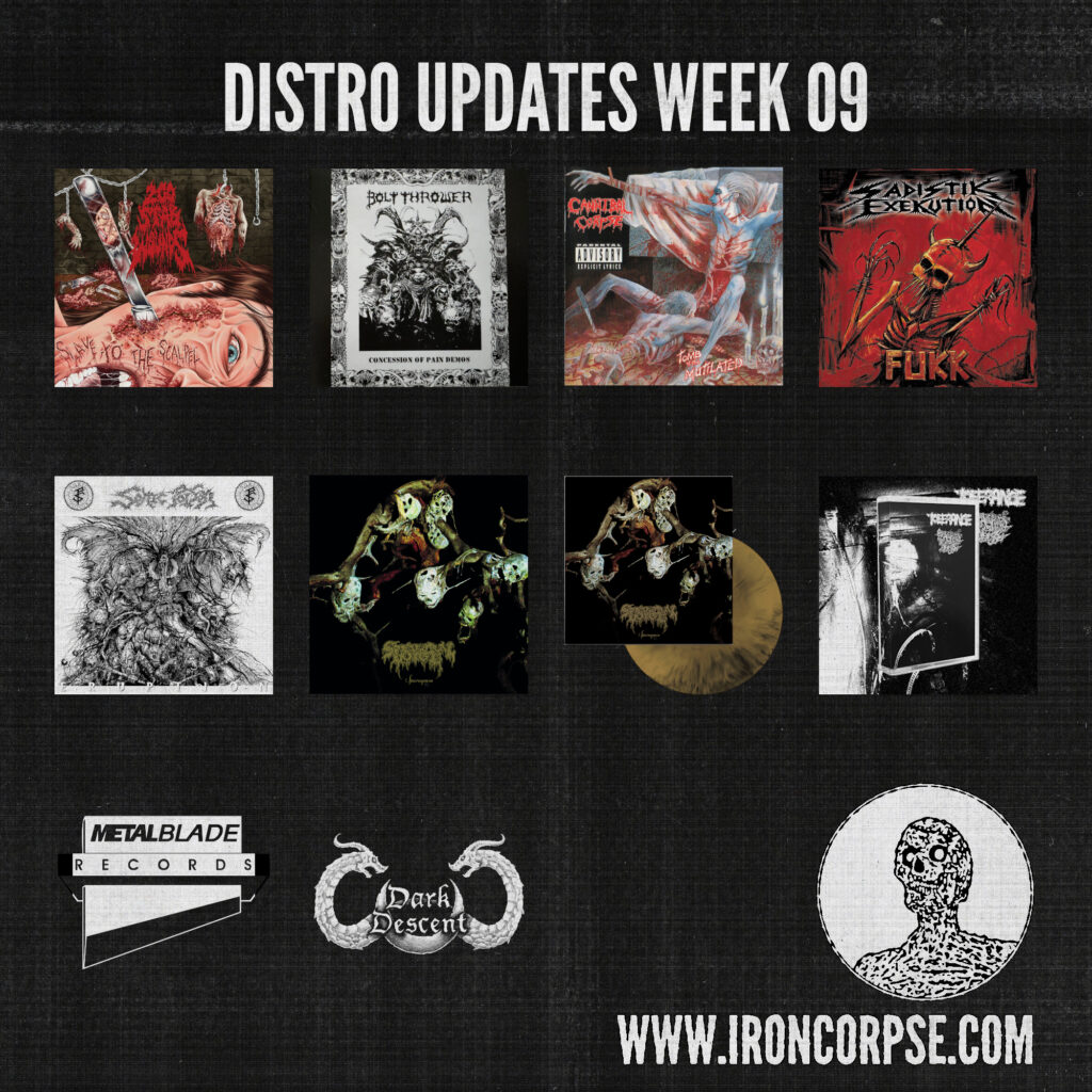 The brand new and coveted SPECTRAL VOICE “Sparagmos” album from DARK DESCENT RECORDS is here, both CD and coloured GOLD/BLACK vinyl. In addition, the rare BOLT THROWER demo compilation, copies of classick CANNIBAL CORPSE LP reissue and the recent SONIC POISON full length CD.