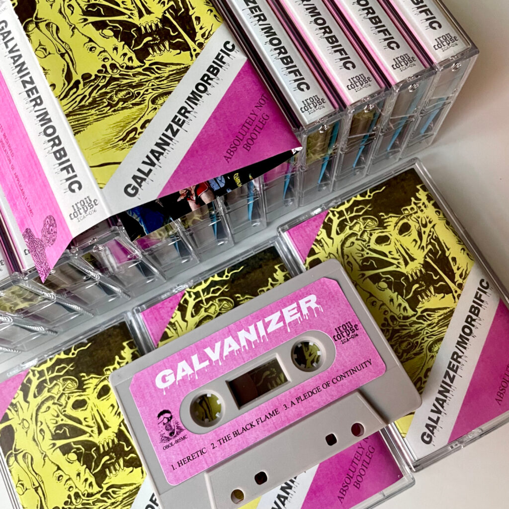 The already third (and probably final) pressing of the superb GALVANIZER / MORBIFIC split cassette will be available on grey shell. Sale starts on November 3rd at noon EEST. Available also as a bundle with MORBIFIC snapback.
