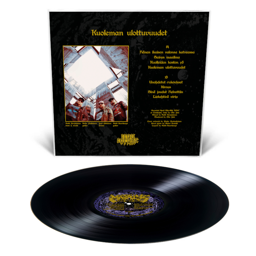 With Kuoleman Ulottuvuudet (“Dimensions of Death”), Mädätys descend deep into the abyss of Finnish deathdoom. Drawing inspiration from the cold, uncompromising legacy of pioneers like RIPPIKOULU, the band forges a sound that is both crushingly heavy and hauntingly atmospheric.