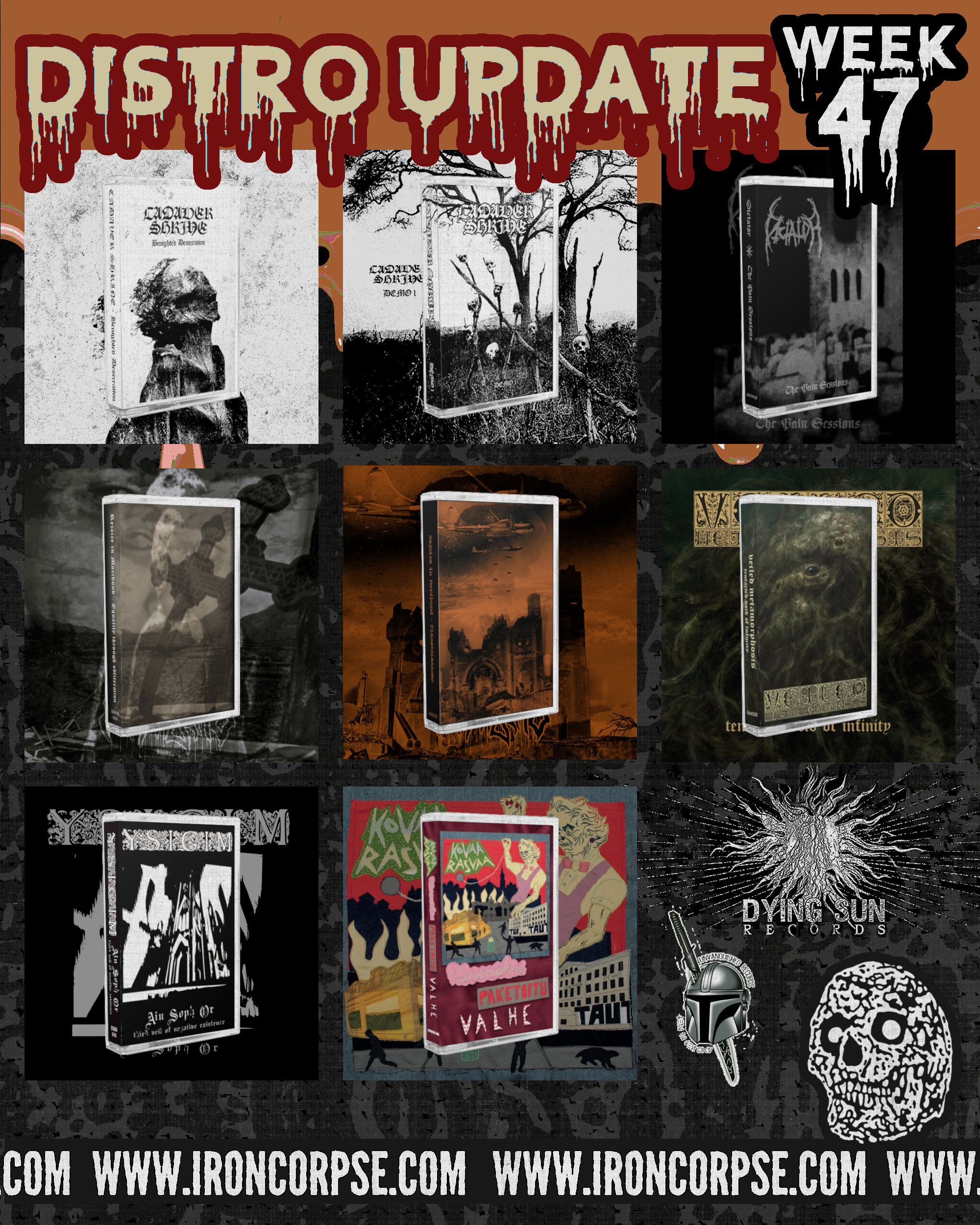 IRON CORPSE is honored and proud to announce the debut album of Oulu-born deathdoom band MÄDÄTYS, who released their first and much acclaimed demo back in 2022. With Kuoleman Ulottuvuudet (“Dimensions of Death”), Mädätys descend deep into the abyss of Finnish deathdoom. Drawing inspiration from the cold, uncompromising legacy of pioneers like RIPPIKOULU, the band forges a sound that is both crushingly heavy and hauntingly atmospheric. The album moves at a deliberate, suffocating pace, where cavernous riffs, mournful melodies, and…