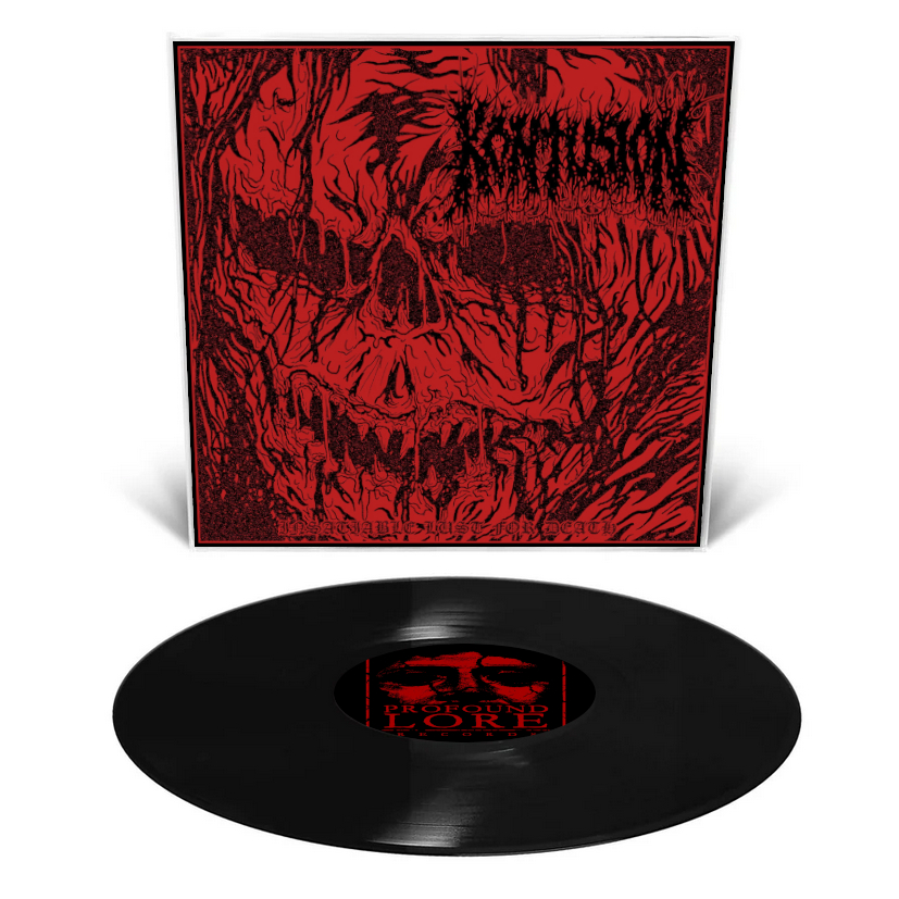 KONTUSION is an evil death metal band from the East Coast of the USA who’s riffs, blasts, and walls of feedback reflect the darkness of a world marred by chaos.) Vocalist/guitarist Mark Bronzino (ex-Iron Reagan/Mammoth Grinder) and drummer Chris Moore (Repulsion) represent the core of the band. “Insatiable Lust For Death” was mixed by Kevin Bernsten, mastered by Nick Townsend, and features art by Rotting Reign.