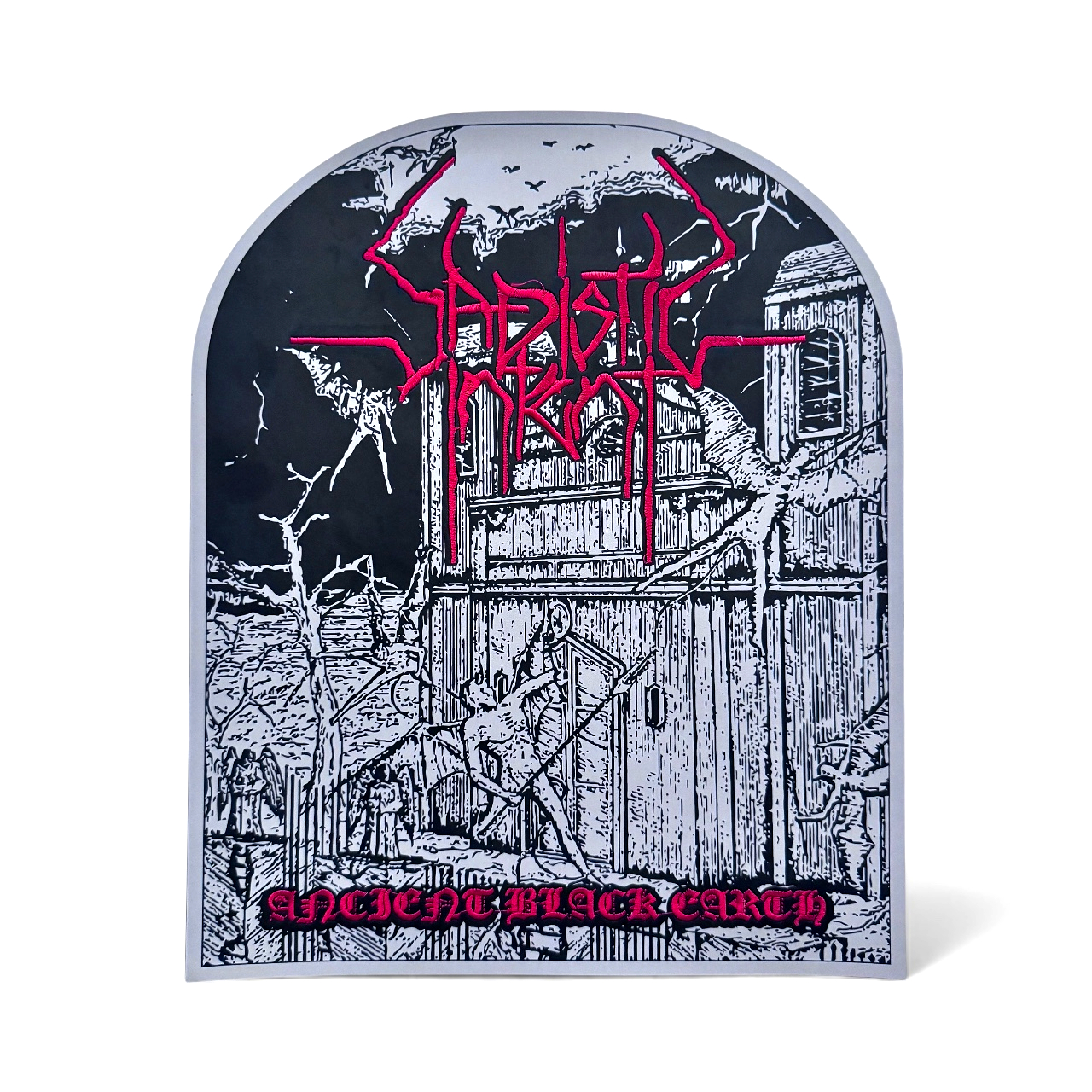 SADISTIC INTENT “Ancient Black Earth” (Grey Border) CARVED FAUX LEATHER BACKPATCH