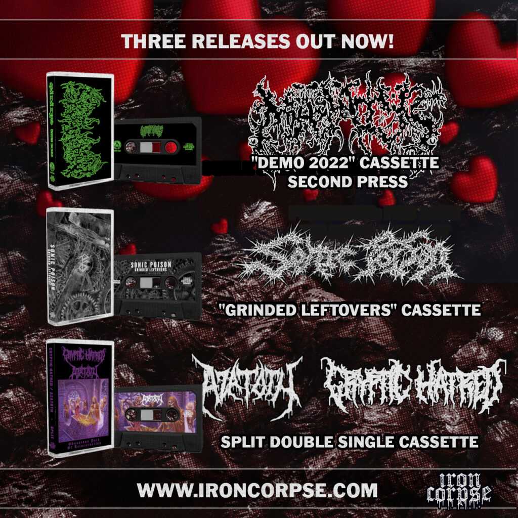 It has been quiet on the IRON CORPSE release front in the last six to eight months. Finally all that work in the shadows is coming to fruition and three releases are finally out NOW and SONIC POISON’s new 8-track EP now streaming full on youtube and bandcamp. Get at it!